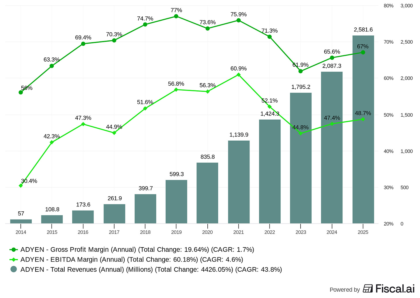 When I think about where I want exposure in this space, I want businesses where growth is still obvious, not something I need to rationalize by talking about “financial engineering.” That’s where Adyen and Shift4 come in.
