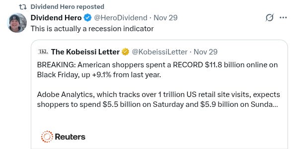 That said, I lean toward the view that this Black Friday record is not as good as it looks. It feels like a number being held up by the top of the K and nominal price increases, while the bottom half of the distribution quietly tightens its belt.