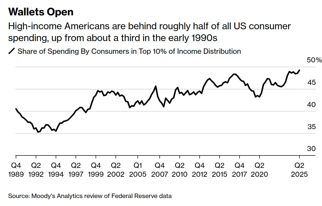 You can see the same tug-of-war in the Fed conversation. Unemployment is near a four-year high. Consumer confidence is around a seven-month low. The broader backdrop is “tighter budgets,” in Reuters’ words. But at the same time, the top 10% are spending aggressively. That strength supports the headline data, even if a big chunk of households is living a very different reality.