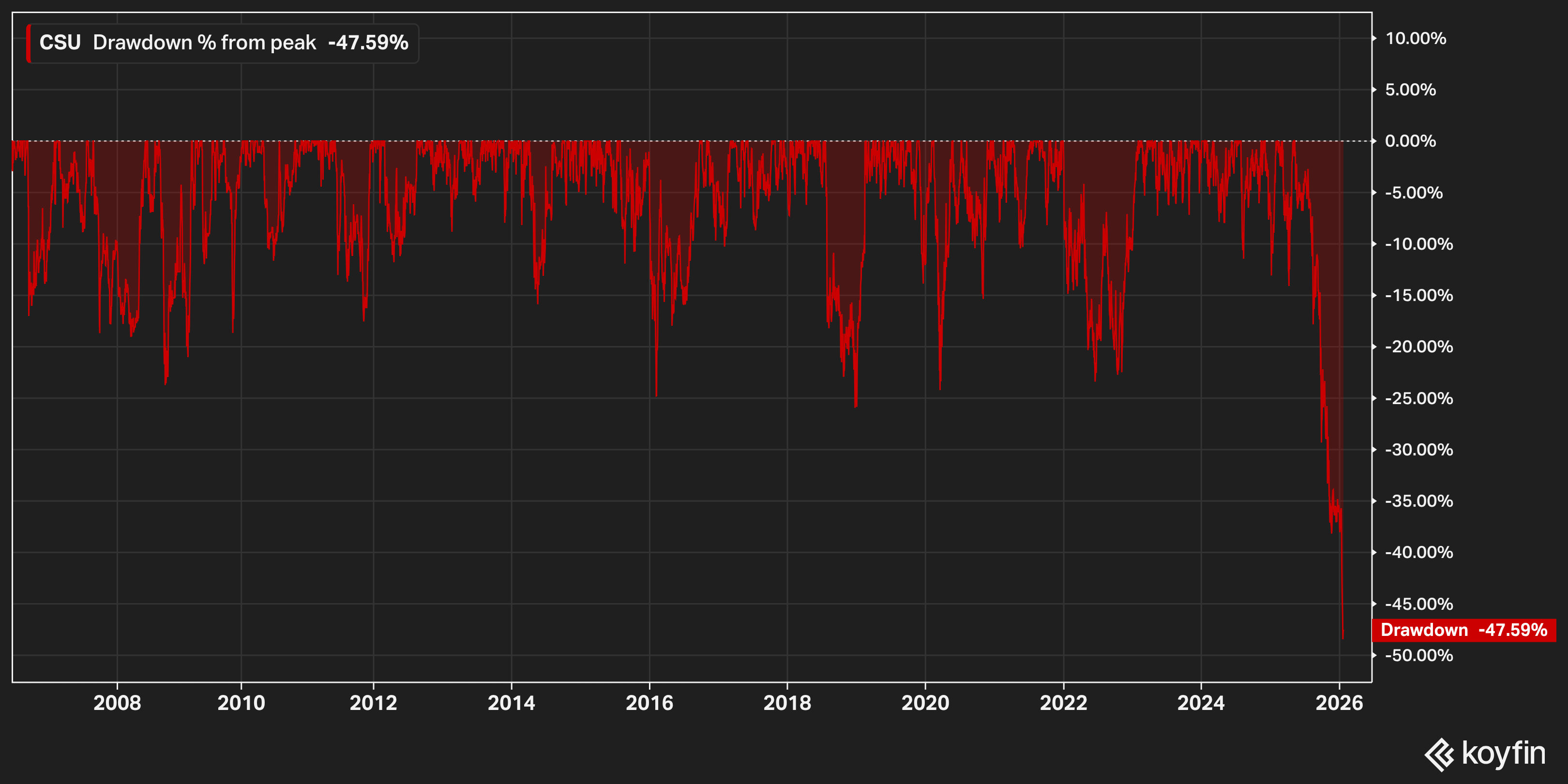 The stock is down about ~45% from its highs. Even fintwit's favorite compounder got swept up in the SaaSacre.