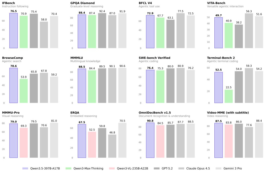 On the model side, Alibaba dropped Qwen 3.5 last Sunday. It’s a 397 billion parameter model built on a sparse mixture-of-experts architecture — only 17 billion parameters are active per query, which is how they get it to 60% cheaper and 8x more efficient than its predecessor.