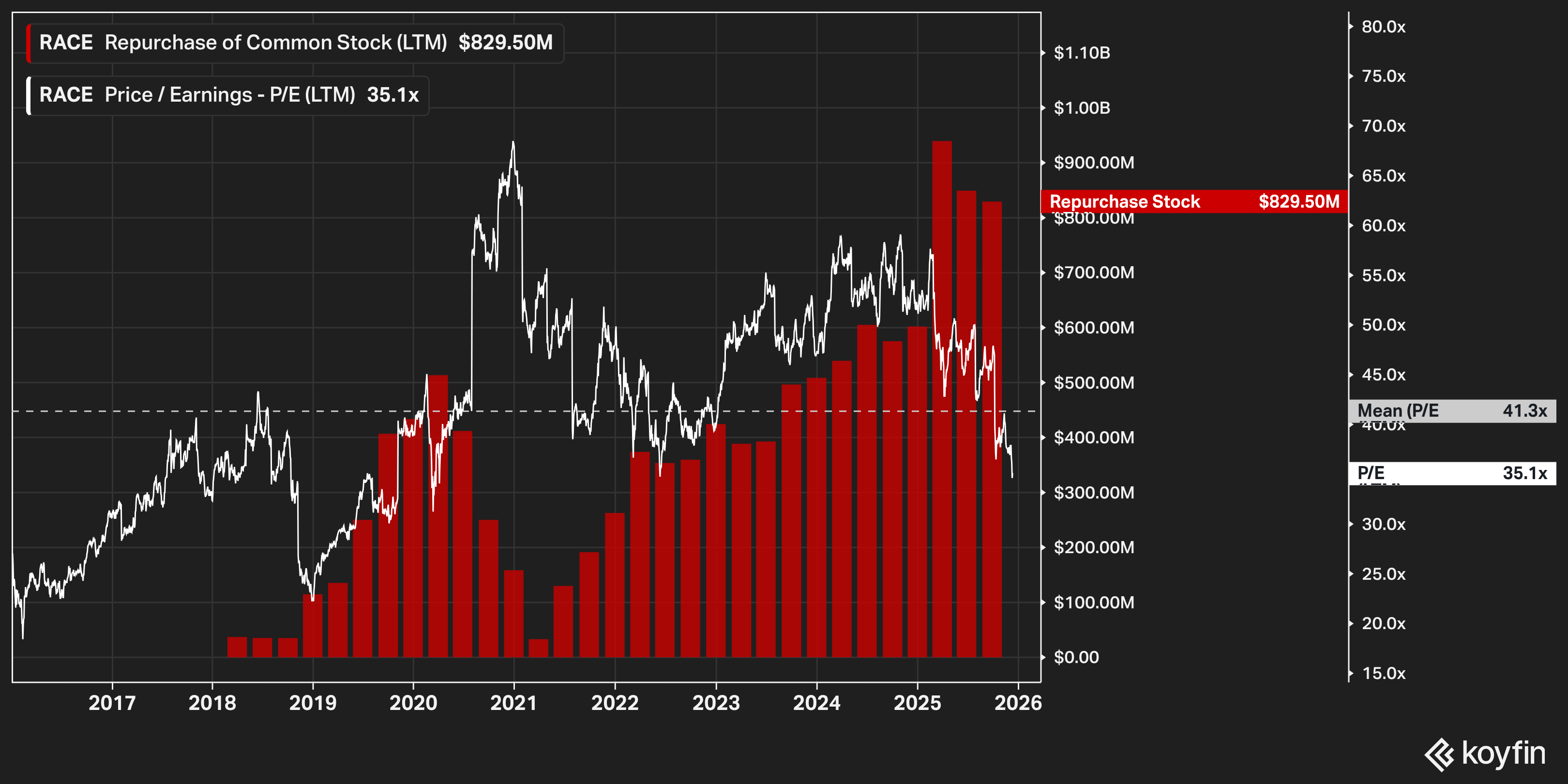 When the stock is melting and the multiple is shrinking, buybacks can either disappear or get bigger. Ferrari’s have gotten bigger. That’s the version of buybacks I actually care about.