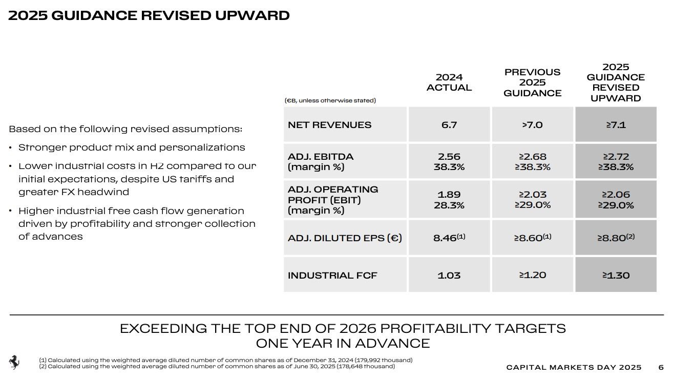 The funny part is they actually raised FY near-term guidance. Ferrari’s own commentary around Q3 2025 was “consistent execution,” with margins still looking absurd for anything that ships on four wheels.